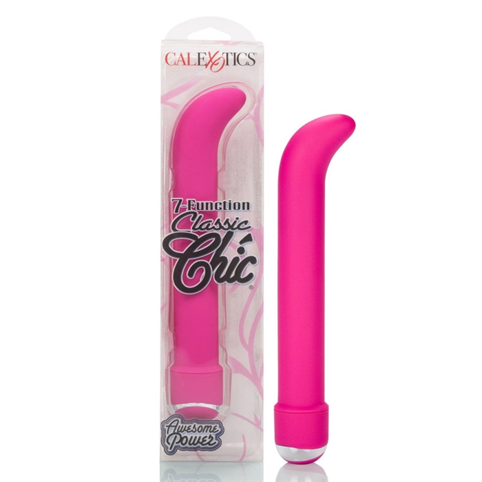 The 7-Function Classic Chic Standard "G" Vibes is the perfect intimate massager to use on your own or to use with your partner. Add a sense of fun and excitement to life’s most intimate moments and let the stylishly give your G-spot the ultimate massage and stimulation with its sensually curved head and its 7 orgasmic massage functions. Measuring 6.25” in length and 1” in width, the Standard "G" Vibes massager is a great size for women looking for a deeper, warmer and more sensual experience, either alone or with a loved one. The curved tip at the end of a smooth shaft will give you added pleasure on entry and with every single movement. Use together with a high-quality lubricant will really maximize your experience and bring a new sense of passion to your love life. The massager not only has a pleasure tip to stimulate your body’s erogenous areas but it also boasts amazing power. Using just 2 AA batteries, this intimate massager can give you a choice of 7 different vibration and pulsation settings, each one designed to bring you maximum pleasure. The waterproof design offers so much versatility so you can enjoy using your massager in the bedroom or in the shower, or even in the bath tub. Finished with a unique velvety smooth coating, the massager glides wonderfully well on all areas of your body and will be sensational to touch on your skin.