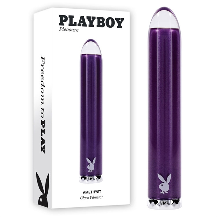 Indulge your gemstone fantasies with the dazzling Amethyst Vibrator. Its state-of-the-art motor amps up to 10 speeds and rhythms while the smooth pointed glass tip creates a delicious sensation, gliding with ease across your hot zones. Navigate securely with the diamond-pattern base that features the iconic Playboy rabbit.