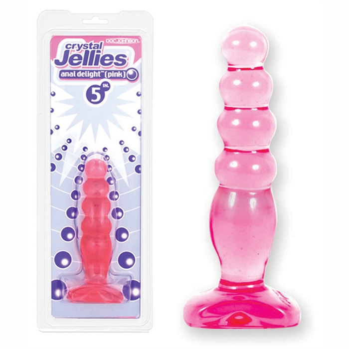 Doc Johnson's Crystal Jellies Anal Delight is a soft and flexible, graduated anal plug. Bounce on the bubbles or use the flared base as a handle to simulate anal beads. Rounded for ease of insertion, each bubbled tier promises a memorable experience. Made from phthalate-free body safe material, which includes Doc's anti-bacterial Sil-A-Gel formula