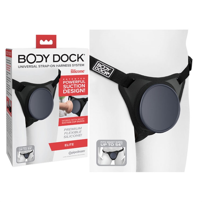 The patented Body Dock® Elite takes strap-on play to a whole new level! It features a premium silicone docking plate that conforms to the shape of your body for the ultimate fit. Also included are adjustable side-release buckles and padded back support. Changing your favorite strap-on accessory has never been faster or easier! It’s as simple as attaching the suction cup on your favorite dildo or vibrator to the docking plate, while the nylon straps easily adjust to fit most sizes and body types. Best of all, it works with most dildos on the market today, including some you may already own. No rings. No snaps. No hassle!