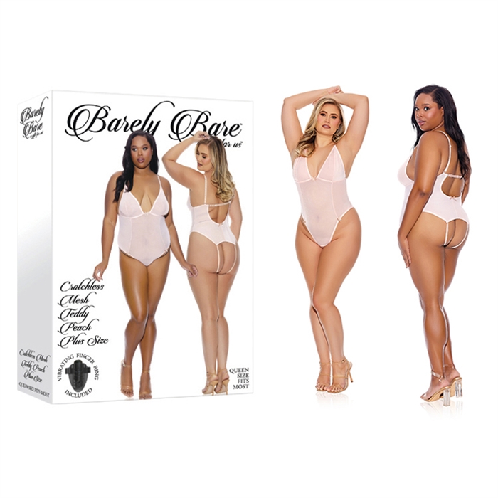 • Crotchless peach mesh teddy