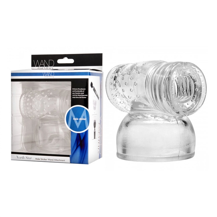 Uniquely designed for amazing stroking adventures. Made from extra soft TPR material, this male masturbation attachment will provide powerful vibrating pleasure with the addition of any standard size wand massager. Its unique design has small pleasure buds within a tight yet stretchy tube. The tube narrows on one side, and is lined with thick, satisfying ribbing, for extra sensation around your cock head, or the base of your shaft, depending on which way you use it. Enhance the pleasure and functionality of your favorite wand with the North Star Male Stroker Wand Attachment.