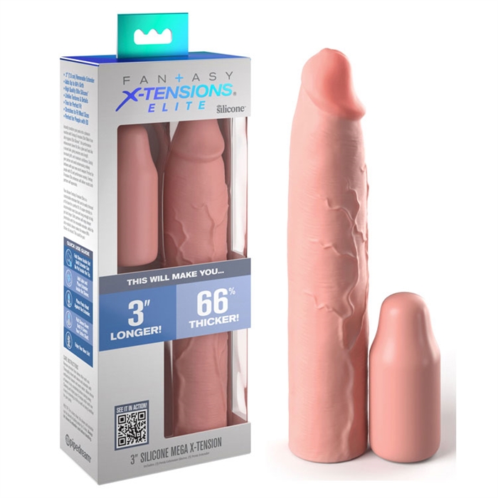 Instantly transform your penis into a pleasure machine with Fantasy X-tensions Elite! Made from ultra-hygienic Elite Silicone™, this performance-enhancement sleeve fits like a glove and feels like a second skin, giving wearers extra length, increased girth, and maximum confidence. Satisfy your partner and avoid embarrassing midway letdowns with your new secret weapon! Perfect for people with ED and performance anxiety, Fantasy X-tensions Elite enhancers will deliver results both partners will appreciate.