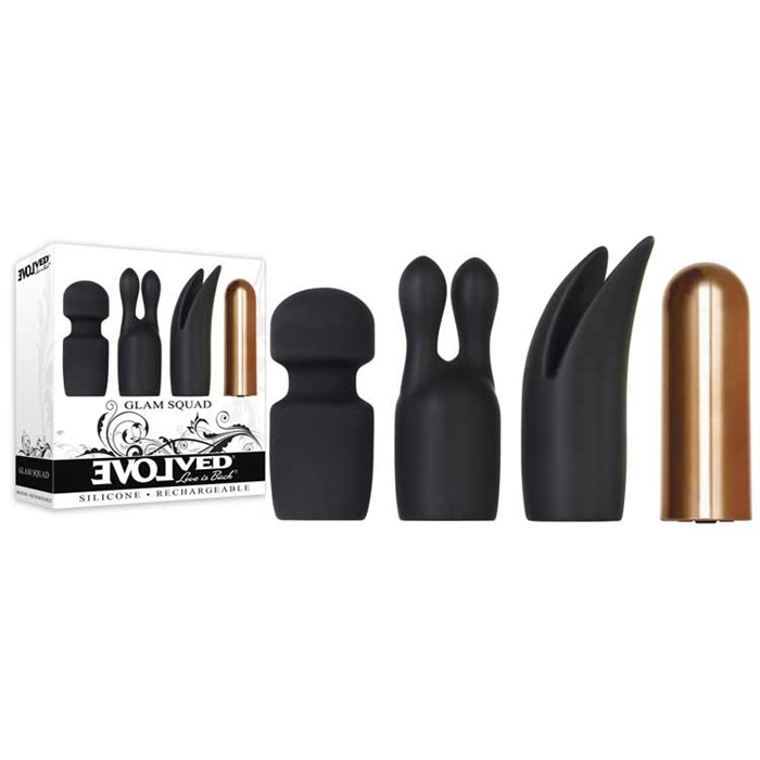 Three unique sensations in one versatile toy! Bouncing bunny ears, a pointed open tulip and a classic wand shape give you extraordinary choices, each with their own delicious feel. All three are crafted in creamy silicone to slip snugly over the 7-speed powerful bullet that is safe to use underwater for shower and bath time play. Don’t compromise on shape! Get targeted clitoral stimulation three different ways, with the toe-curling power to send you off on your most erotic fantasies. Clean with Evolved Toy Cleaner and a warm water rinse.