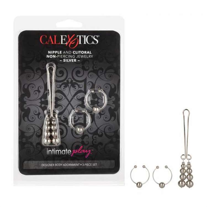 Adorn your erotic sweet spots with the exotic Nipple and Clitoral Non-Piercing Body Jewelry. The super stylish, designer body adornment set is suitable for everyday wear and perfect for sensuous seduction encounters. The fully adjustable non-piercing, feminine jewelry is ideal for jewelry lovers who don’t want to commit to body piercings. Clip on the rings and clit clip and enjoy discreet personal stimulation pleasure under your clothes. The alluring set comprises of a clitoral clip with dangling decorative beaded adornment, and elegant and understated beaded nipple rings. The matching set is made from non-tarnishing, nickel-free steel, with ABS beads, and is fully adjustable. When attached to the nipples, the hoop rings deliver tantalizing pleasurable tingles. The clitoral clip also creates arousing stimulation when worn. The body jewelry is designed to enhance the pleasure of intimacy for both lovers during play. Celebrate the beauty of your body by embellishing it. The sensual clip on jewelry is comfortable to wear and easy to remove. Elevate your personal satisfaction by enjoying exquisite sensations as your body naturally, moves. Surprise and delight your lover by decorating your pleasure zones with designer jewels. Keep the matching set in good condition by cleaning the jewelry before and after use.
