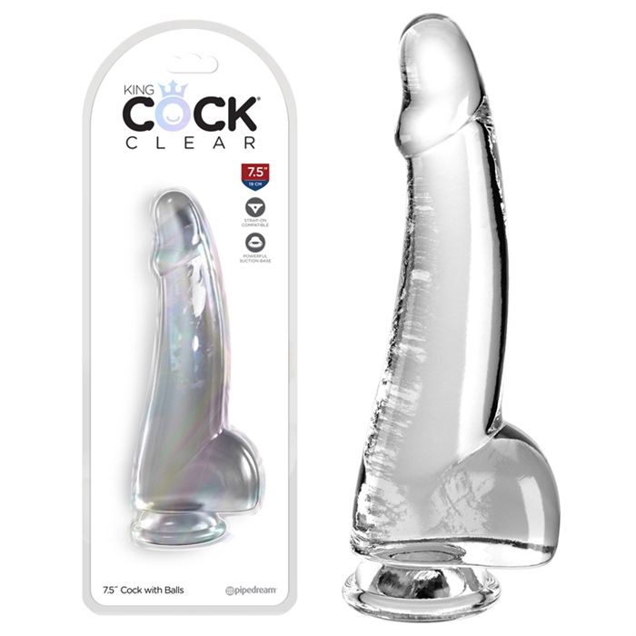 Clearly the best! Created to heighten your pleasure experience, this specially crafted formula is virtually odorless, non-sticky, and easy to clean. King Cock Clear combines a translucent dildo with amazing cock designs. The luminous clarity and detailed form will fulfill all your fantasies! With its flexible shaft, King Cock Clear will engage your senses visually and physically. The powerful suction cup base sticks to nearly any flat surface and makes every dildo harness compatible.