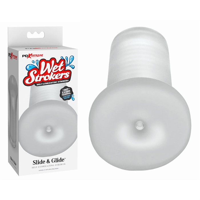 You’ve cum to the right place, because this stroker is dripping wet with excitement! Get ready for an unforgettable stroking session when you stick your dick deep inside the Wet Strokers Slide & Glide stroker. It’s self-lubricating—which means that all it takes is a little water, and this Slide & Glide turns into a pleasure zone of slippery orgasmic fun! Designed with a super-stimulating pleasure tunnel, you can be sure that this self-lubricating stroker feels BETTER than the real thing! So stop dreaming and start creaming today!