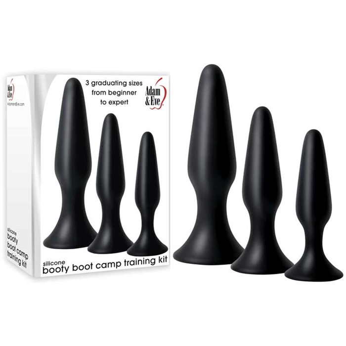 Make sure your anal exploration goes as smooth as silk with this set of training butt plugs that go from tiny to robust in three graduated sizes! Use plenty of lubricant as you begin with the first size and slowly work your way up from there. The flared base gives you peace of mind for easy retrieval, and clean up is snap with Adam & Eve toy cleaner and warm water rinse!