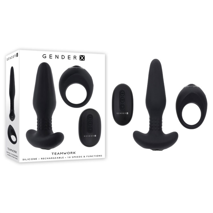 A powerful duo of vibrating remote-control toys designed for multiple possibilities. Supple and smooth, the plug tapers to a rounded, textured tip and finishes with rumbling, rotating beads at the neck before widening to a safety base handle. The ABS ring is chunky on top and narrows at the bottom curve for maximum comfort. Each 10-speed shape is independently controlled for a custom experience.