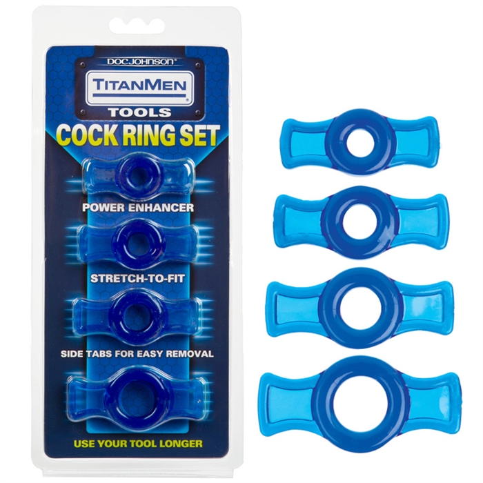 Enhance your member with the most convenient and manageable cock rings available. These TitanMen Tools Cock Rings stretch to fit with the aid of easy to grip side tabs. Each set contains 4 rings ranging in size from 0.4” to 0.75” un-stretched. The largest flexible ring can accommodate up to a 3” diameter shaft. The rings are easy to place and remove, even with slippery hands, because each tab features a thick border, allowing the rings to be adjusted with ease. The TitanMen Tools Cock ring set is made of non-phthalate TPR. Blue